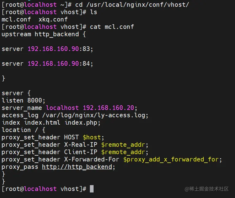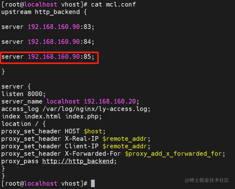 (2)查看/usr/local/nginx/conf/vhost/mcl.conf 文件内容