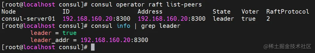 curl 127.0.0.1:8500/v1/status/leader #集群 server-leader