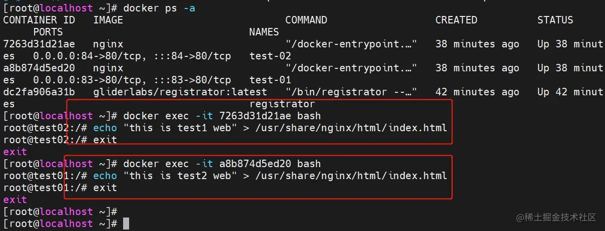 (1)增加一个 nginx 容器节点,测试服务发现及配置更新功能。