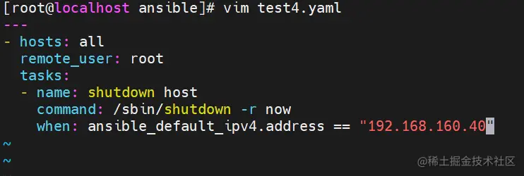 remote_user: root #指定被管理主机上执行任务的用户