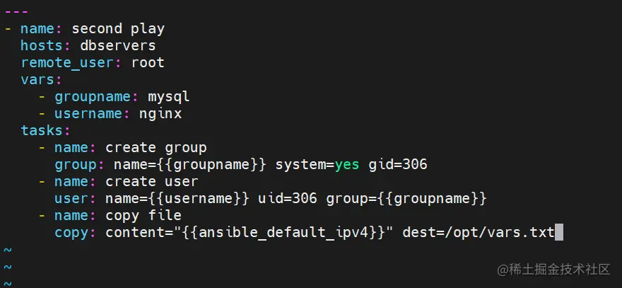 - groupname: mysql #格式为 key: value