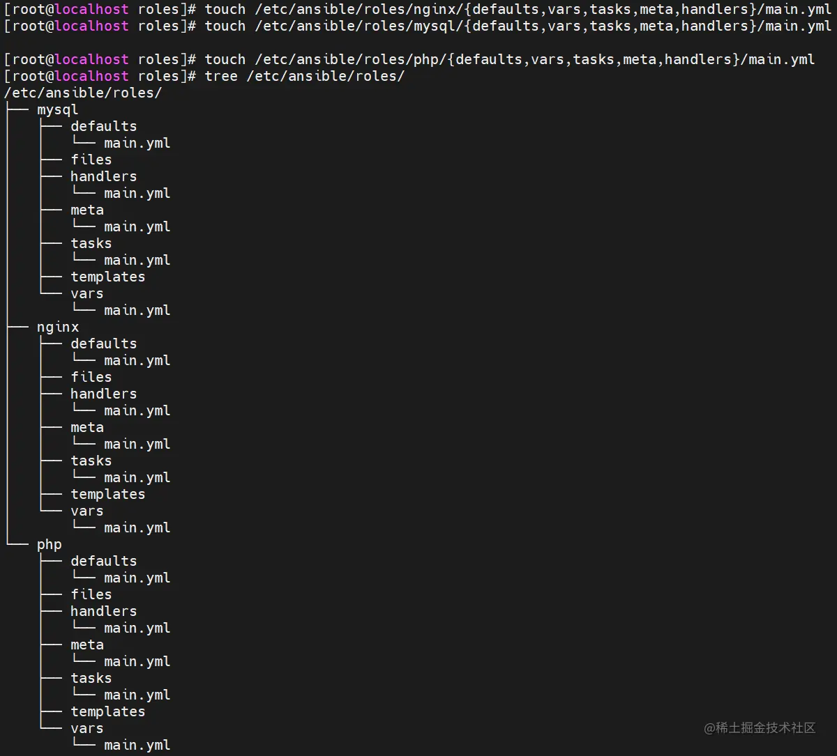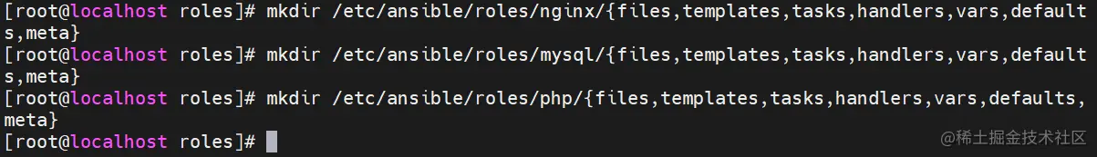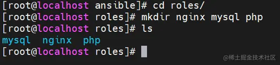 (3)在 roles 目录中分别创建以各角色名称命令的目录,如 nginx、mysql、php