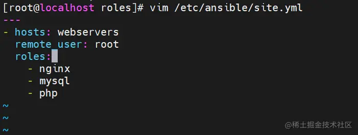 (6)修改 site.yml 文件,针对不同主机去调用不同的角色