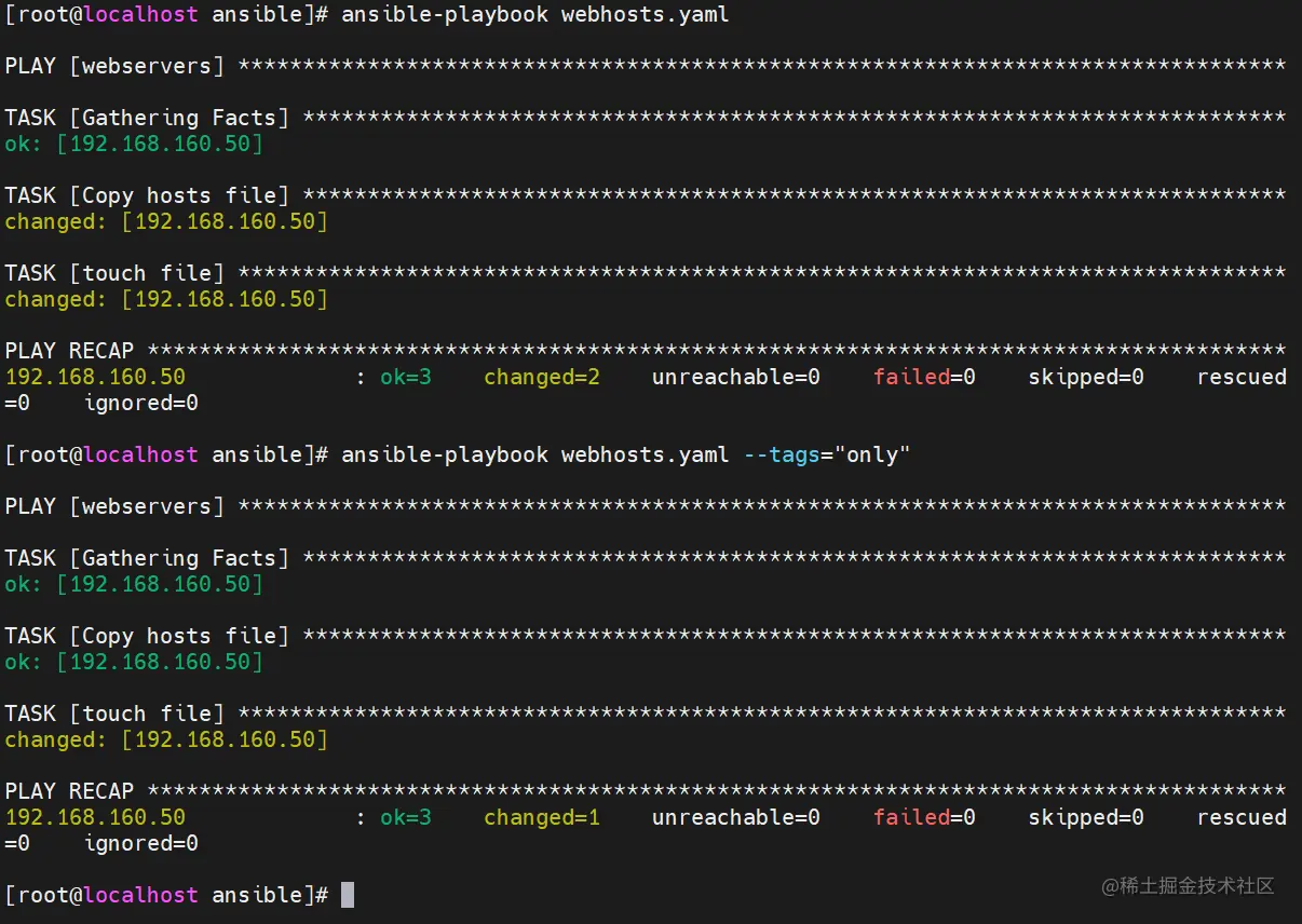 ansible-playbook webhosts.yaml --tags="only"