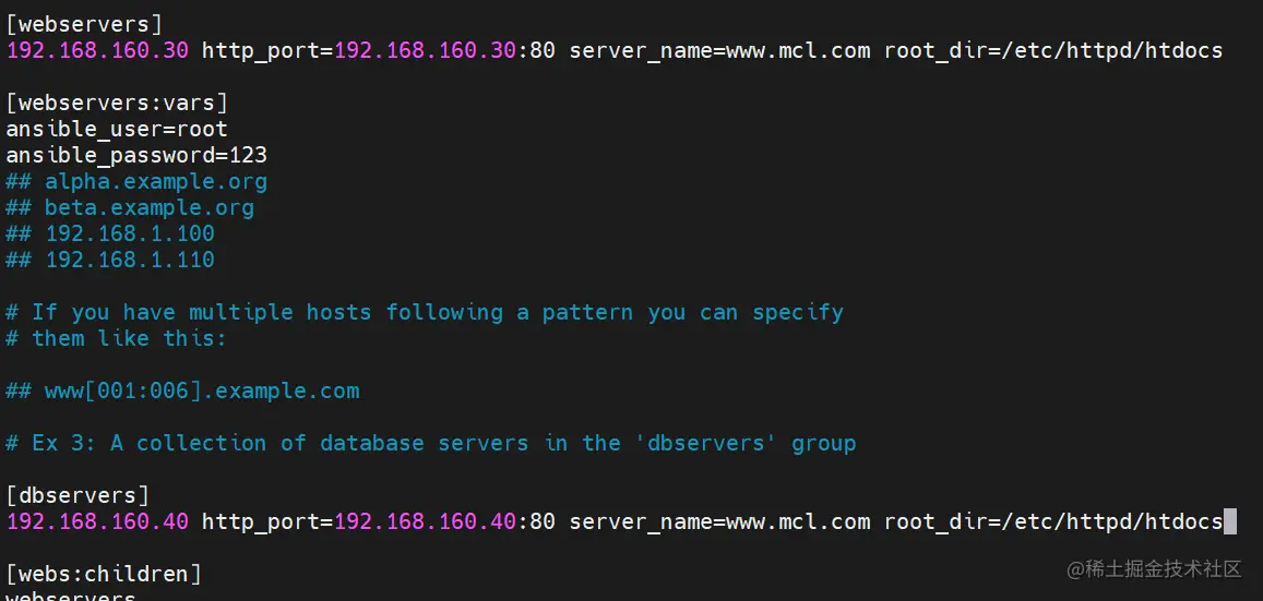 | hosts | 定义节点,可以是组 |