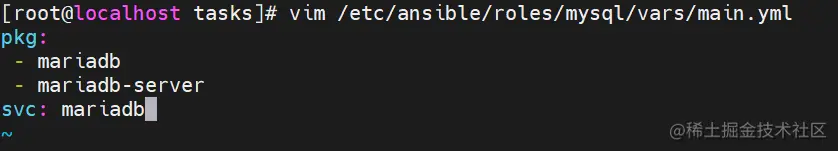 vim /etc/ansible/roles/mysql/vars/main.yml
