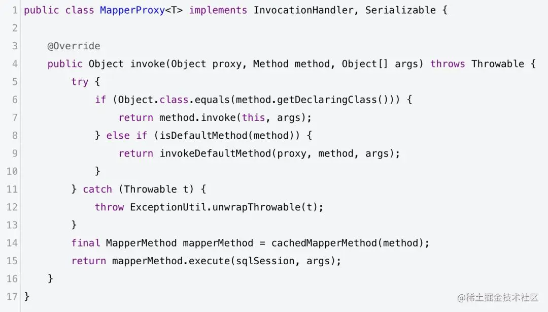 非常典型的,该MapperProxy类实现了InvocationHandler接口,并且实现了该接口的invoke方法。