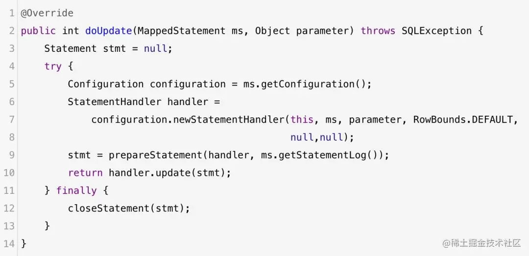 而该方法则会调用后续的sqlSession.cud>executor.execute>prepareStatement等一系列方法,完成SQL的执行和返回。