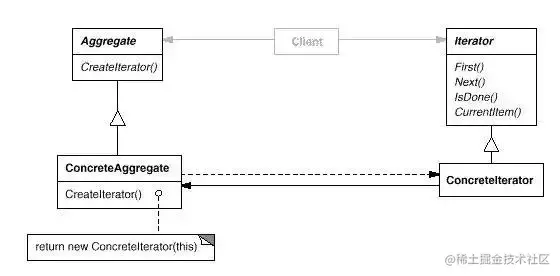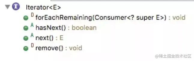 Java的Iterator就是迭代器模式的接口,只要实现了该接口,就相当于应用了迭代器模式: