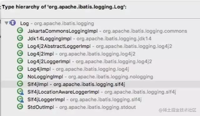Mybatis提供了多种日志框架的实现,这些实现都匹配这个Log接口所定义的接口方法,最终实现了所有外部日志框架到Mybatis日志包的适配: