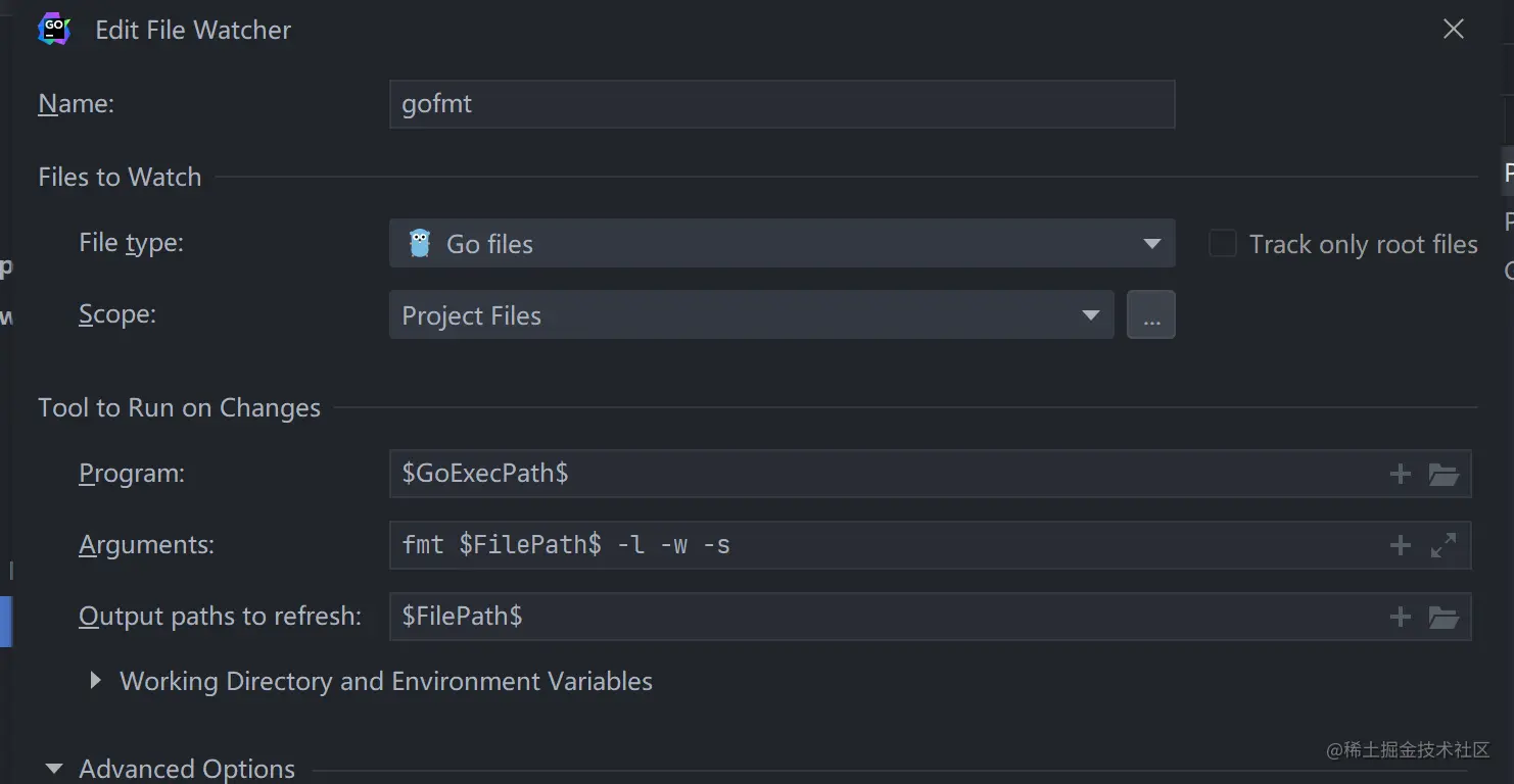 若无go fmt,手动配置信息如下: