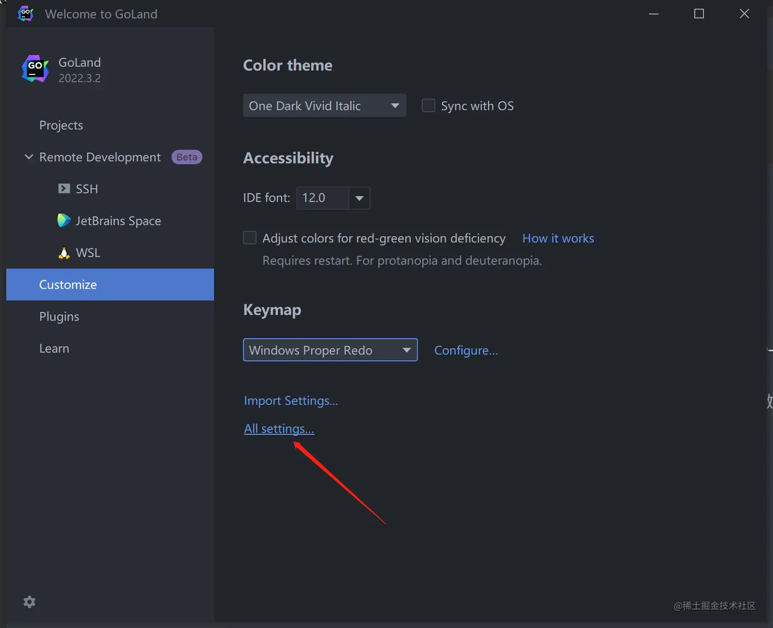 - Goland的设置分为两个层级:IDE层和Project层