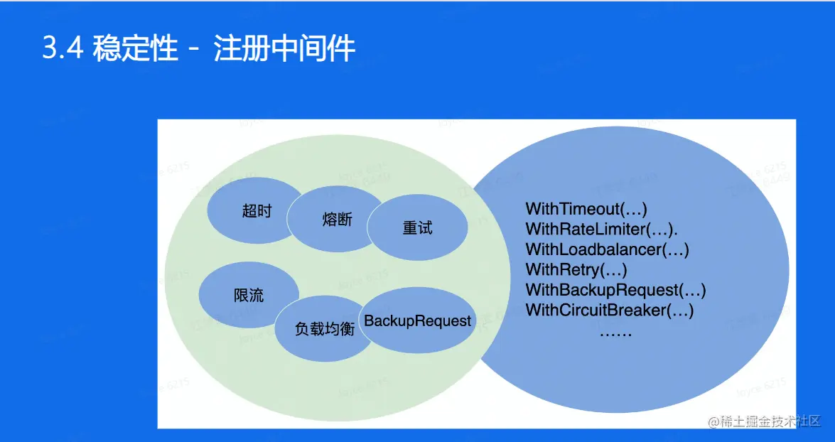 Kitex Client 和 Server 的创建接口均采用 Option 模式,提供了极大的灵活性,很方便就能注入这些稳定性策略
