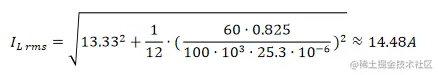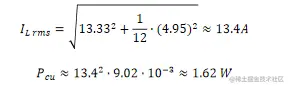正如假设的那样,当电感下降 30% 时,纹波电流将上升 43% 并且为 4.951.43=7.07 ,相应的最大电流将为 13.33+7.07/2=16.87 。它小于规格书所显示的 23A,上述估计可取为最大损失条件。
