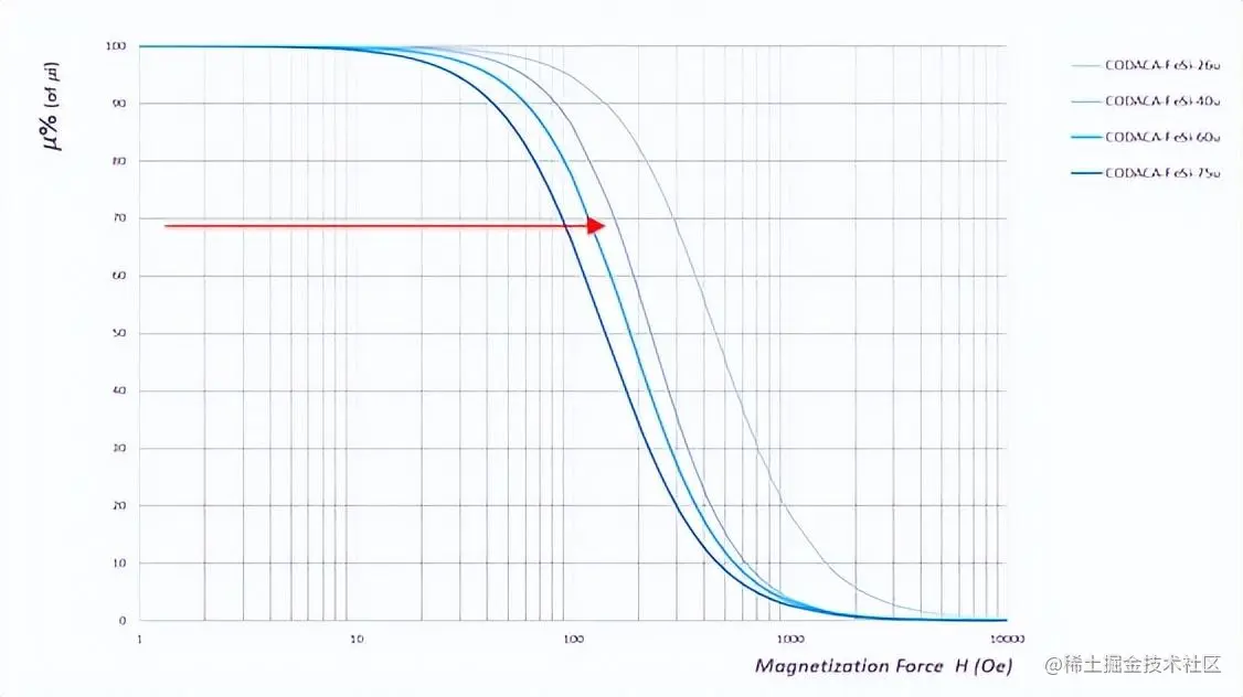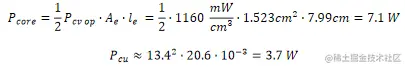 磁芯饱和可由磁芯的直流偏压曲线确定,由于磁芯尚未达到饱和点,因此计算是有效的。调整后的功率损耗为: