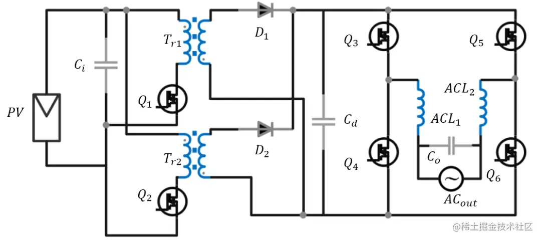 在逆变器阶段,为了降低开关噪声,隔离光伏发电端与电网之间的噪声通路,通常会配置电感量大、体积大的滤波电感,也称为ACL,对应光伏终端输入的DCL电感。为了实现非常大的电感值(低滤波频率),通常使用硅钢或非晶或多气隙铁氧体,因为横截面积也很大,因此整体体积很大。