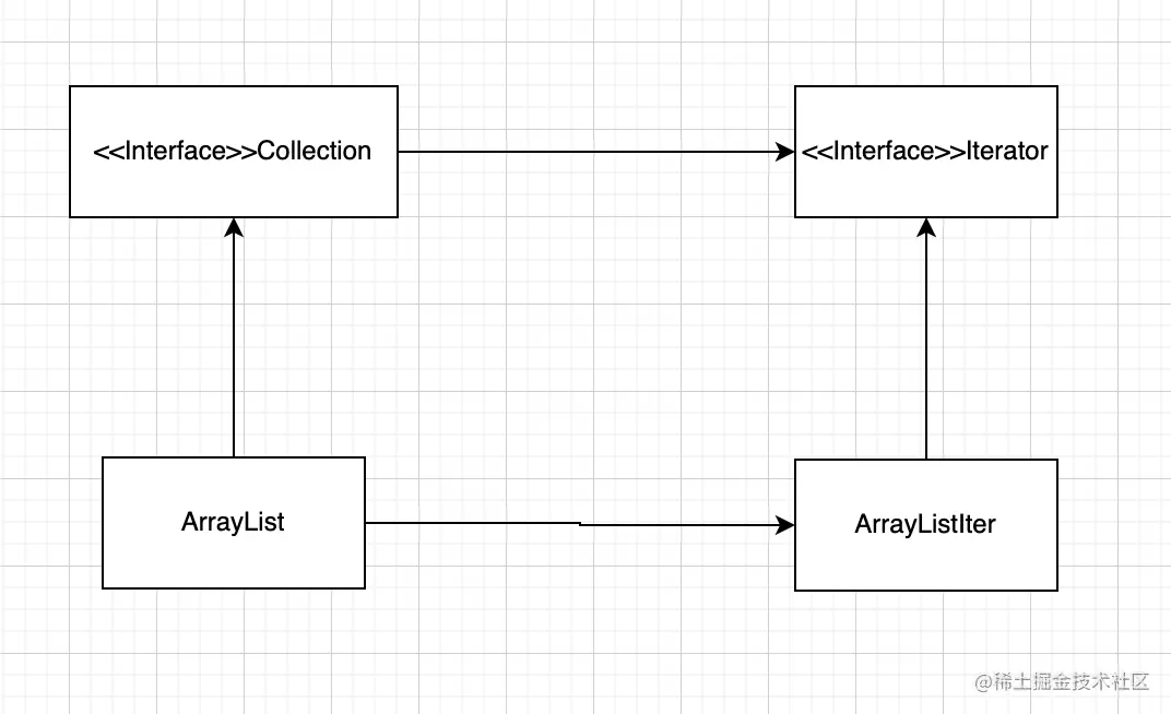 把迭代的方法放在迭代器里实现,在集合中只要选择迭代器的一个实现类,让这个实现类去完成迭代就行了