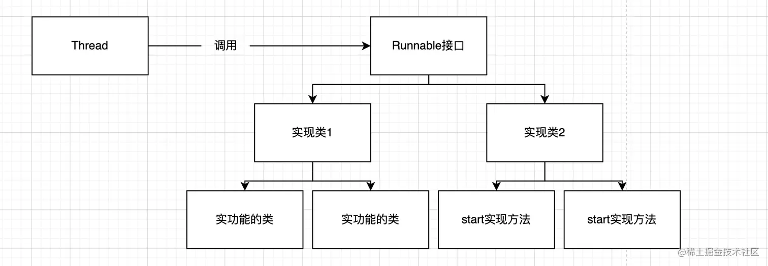 Runnable接口相当于命令角色,Thread相当于调用者,start方法相当于方法