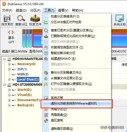 DiskGenius将物理系统转换为VMware虚拟机系统的操作很简单,按照下面的图文教程一步一步操作即可。