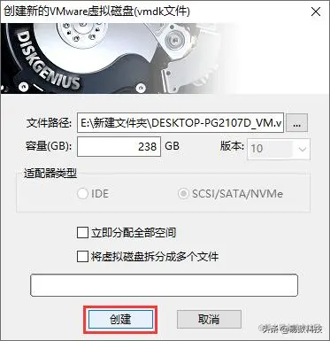 点击"创建"按钮,虚拟磁盘创建完成。