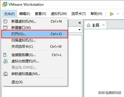 以VMware Workstation为例,打开刚刚迁移的系统。点击"文件"菜单,然后选择"打开"选项。