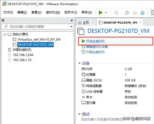 现在,在VMware中可以看到该虚拟机,选中它并点击"开启此虚拟机"选项。之后,就可以在虚拟机里运行迁移后的系统了。