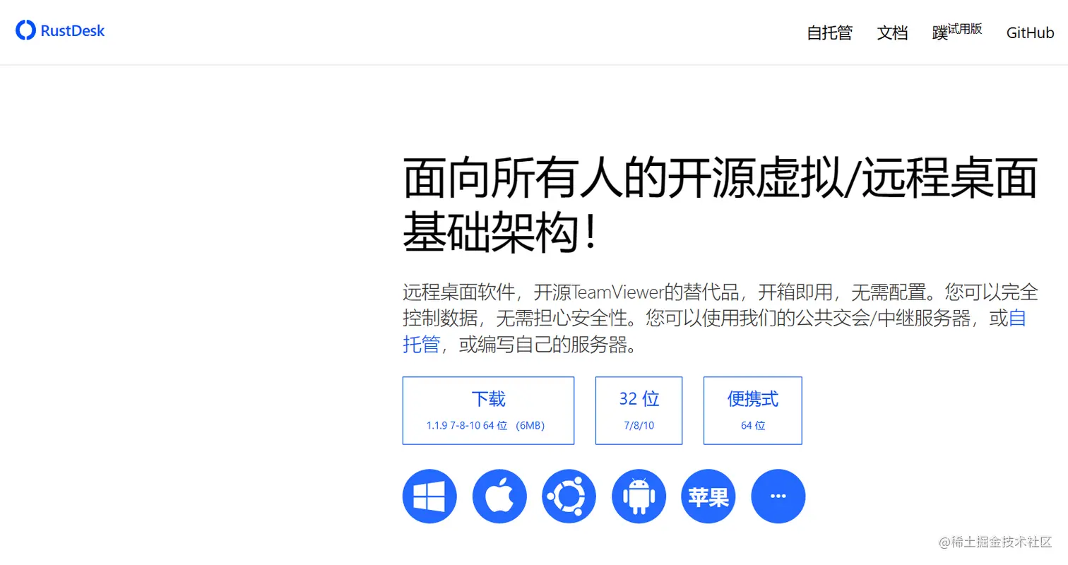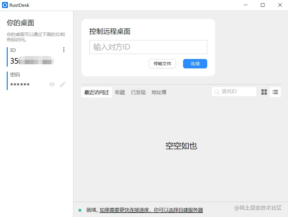 RustDesk的使用门槛意外的低,下载程序后,直接运行就能用,不需要注册登录。