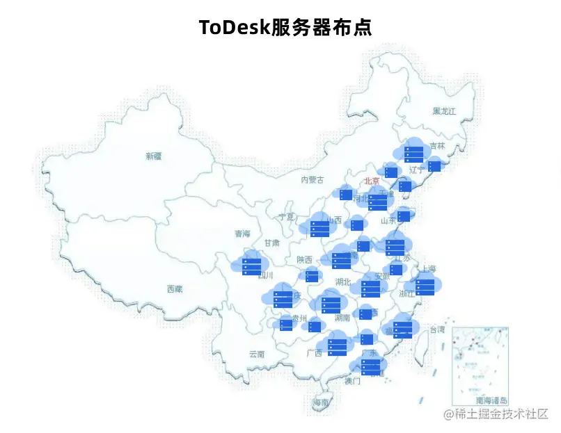 ToDesk和向日葵的服务器在国内各地都有进行布置,不过ToDesk数量相对更多一些,在全国建立了超200个网络节点,而向日葵在国内只有4个转发机房。