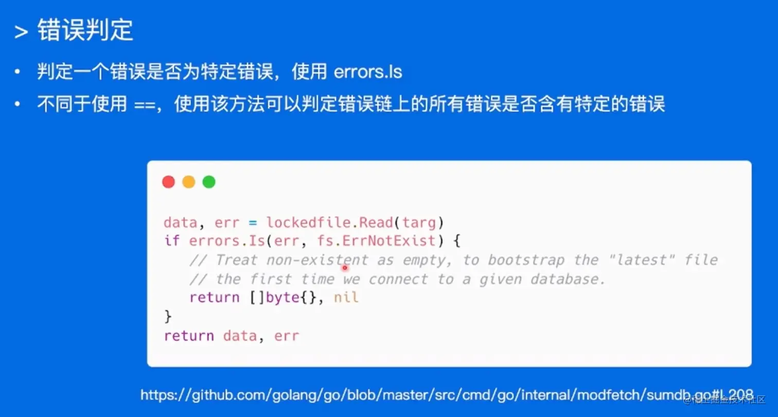 简单错误指的是支持出现一次的错误,其他地方不需要捕获该错误,那么使用errors.New来创建一个匿名变量来直接表示简单错误。