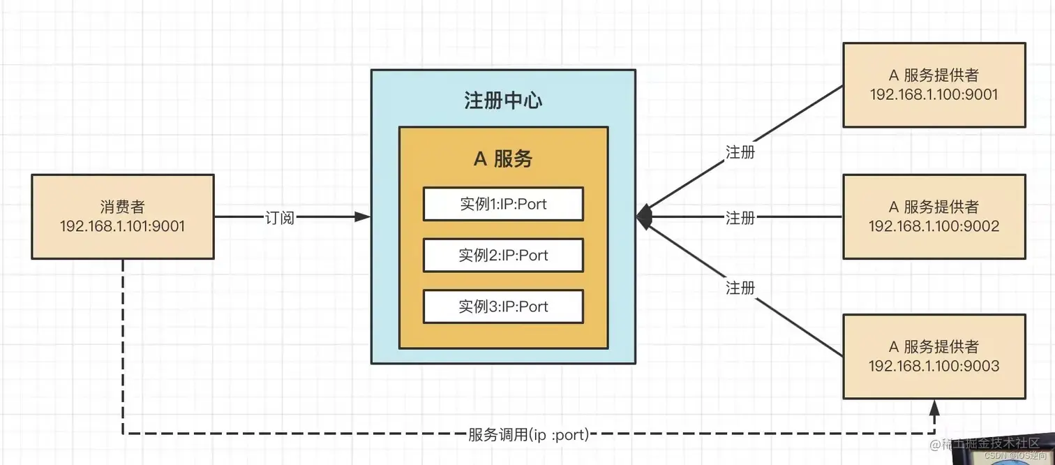 - 注册中心:会记录每台服务名称以及每台服务对应的 ip + port。