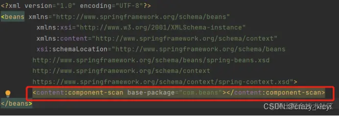 注意:想要将对象成功的存储到 Spring 中,我们需要配置⼀下存储对象的扫描包路径,只有被配置的包下的所有类,添加了注解才能被正确的识别并保存到 Spring 中。