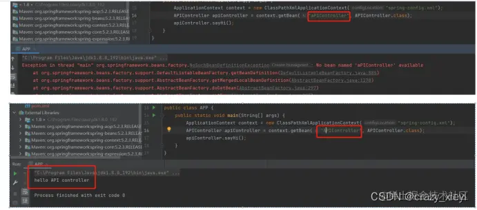 但是出现了个例,出现了不同的情况,他的类名不是用大驼峰命名,在使用beanName的时候,还是按照以往的习惯将类名首字母变成小写,这个时候就报错了。当我们使用原类名的时候就可以了,这样的问题与我们之前的使用习惯相悖,到底是什么原因呢?下面接着分析: