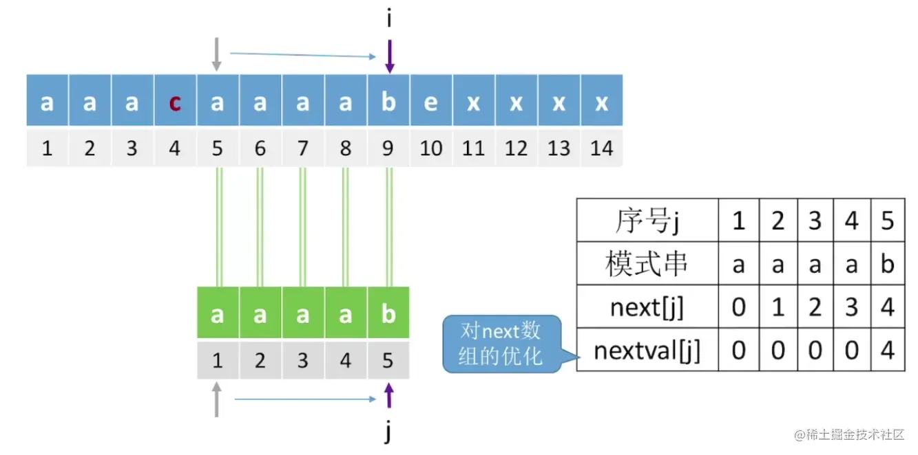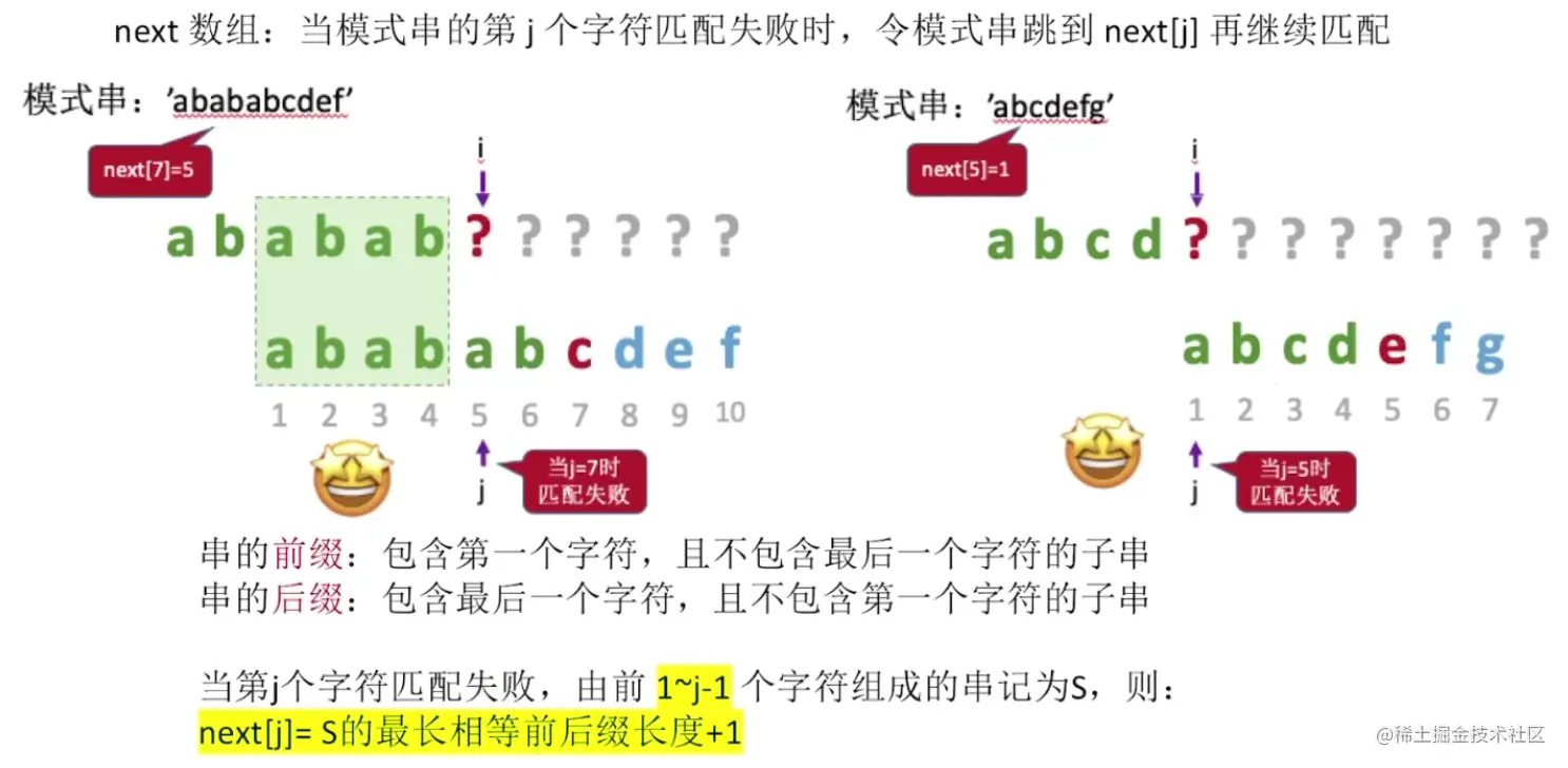 注:本例的所有字符串都是从数组下标为1的位置开始。如有从0开始,可能稍有不同,可以参照分析一下。