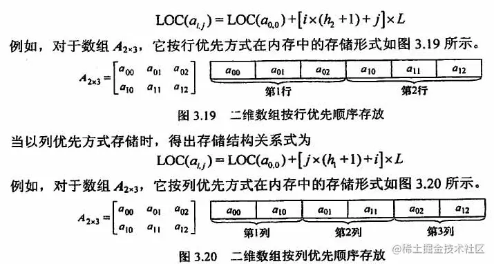 对于多维数组,有两种映射方法:按行优先和按列优先。