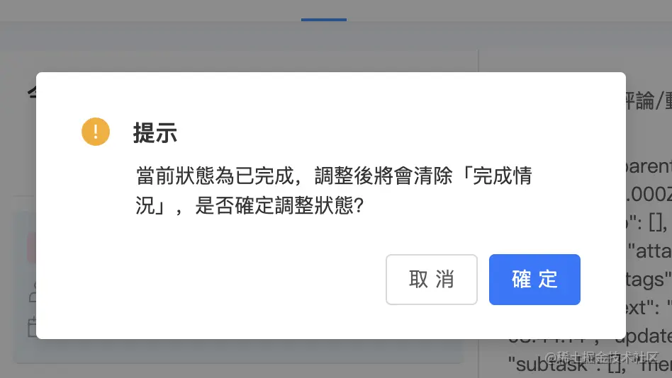 當前狀態為已完成,調整後將會清除「完成情況」,是否確定調整狀態?
