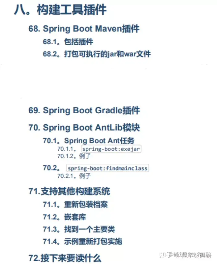 **考虑到文章的观赏性问题,整理出一份Spring Boot文档作为展示,我在文末将完整的文档分享了出来,有需要的朋友只需