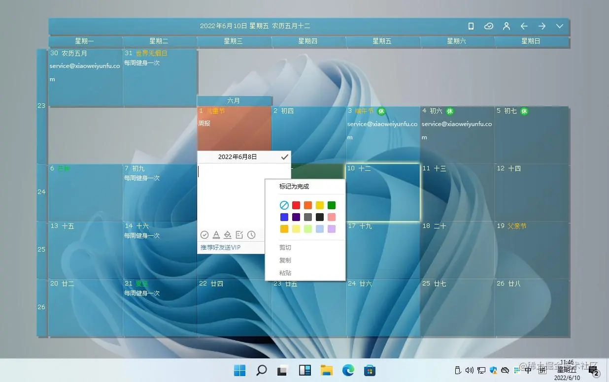 日历清单是一款桌面日历工具,为大家提供了更多的清单记录功能,让你在每个日期的下面可以记录更多的事情,还有专门的体型服务帮准更好的安排每一天的行程。我们可以双击某个日期,输入那一天的待办事项,还能调整背景颜色、透明度,更好地适应我们的壁纸。