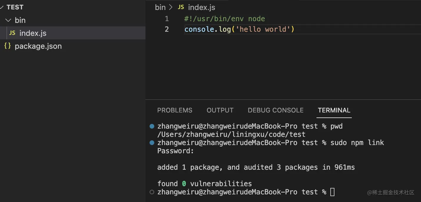 - 在当前项目下执行 npm link