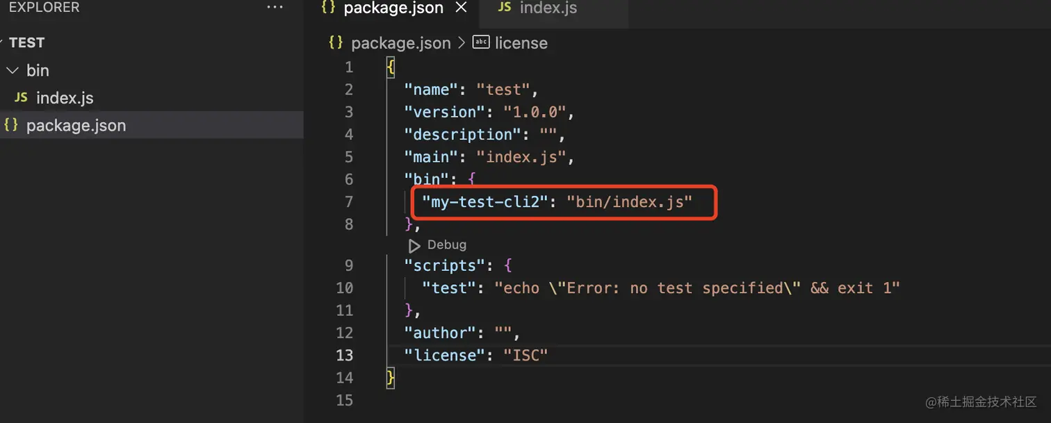 - 在 package.json 里配置 bin