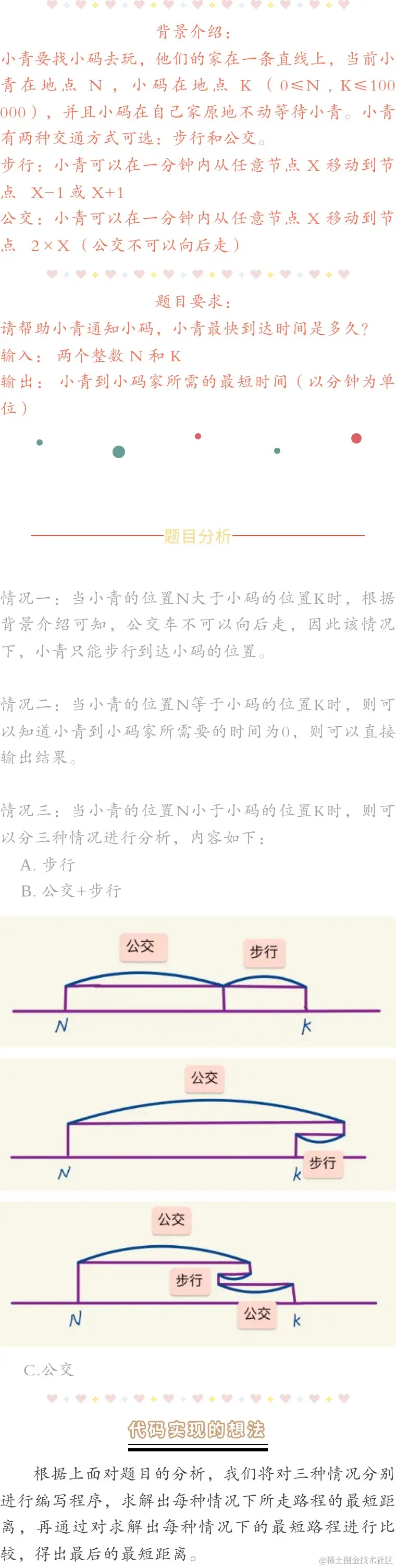 %当符合情况小青的位置在小码的位置前方时,由于公交车不能后退,因此只能采用步行