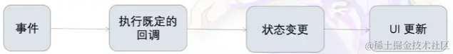 - 状态更新,UI 不会自动更新,需要手动地调用 DOM进行更新。