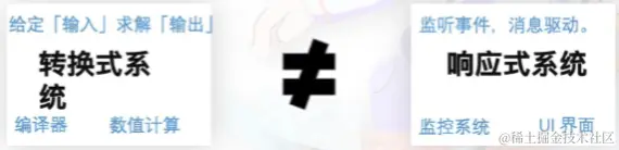 前端代码并不需要很多计算,而是需要很多监听,所以说用转换式子系统写前端代码是非常难受的。因此React是响应式系统。