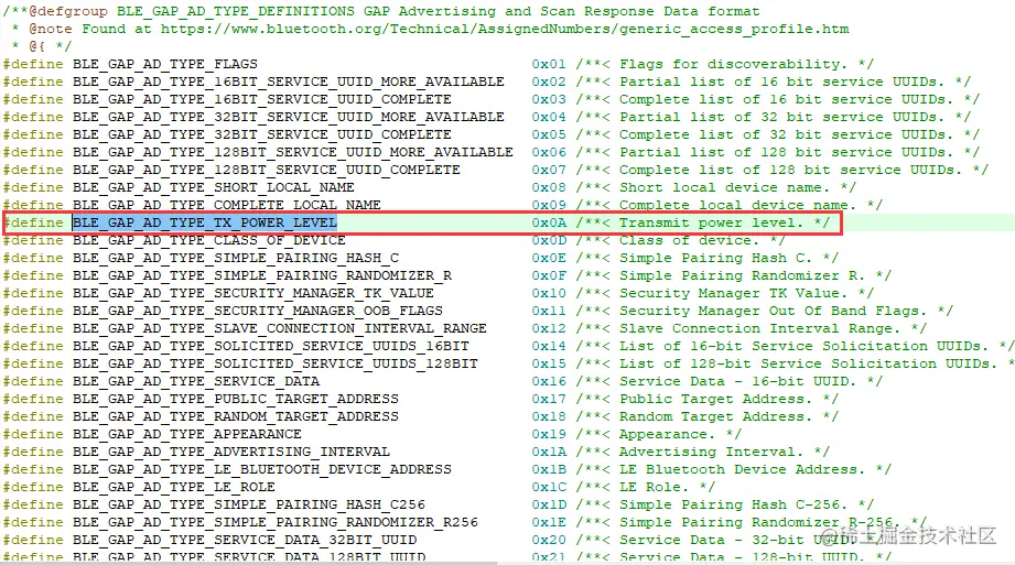 0x0A 就是 广播中AD Type:BLE_GAP_AD_TYPE_TX_POWER_LEVEL