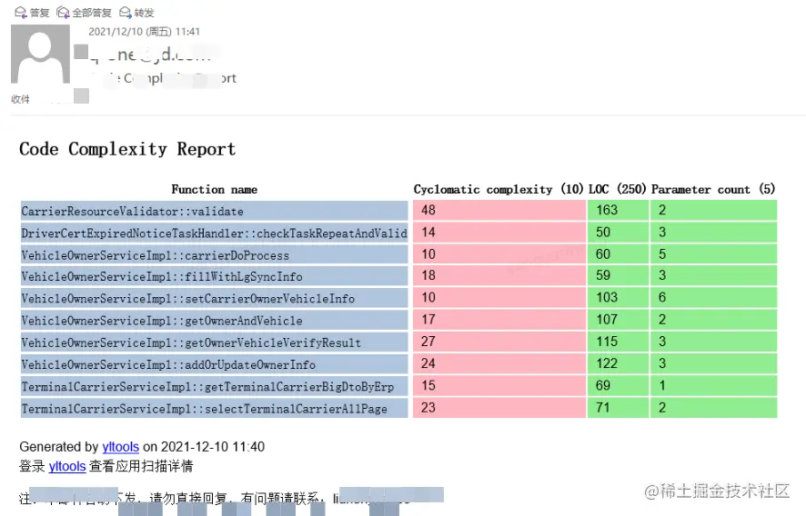 - 每周定期执行,按照系统维度扫描,支持触发邮件通知对应系统研发查看超过阀值方法名称