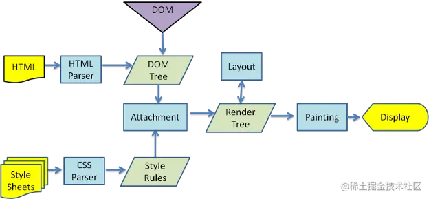 渲染引擎将 HTML 解析成 DOM 树,CSS 解析成 CSSOM,将两者结合创建渲染树。在渲染阶段,通过重绘和重排绘制页面元素。所以,当我们执行以下代码时: