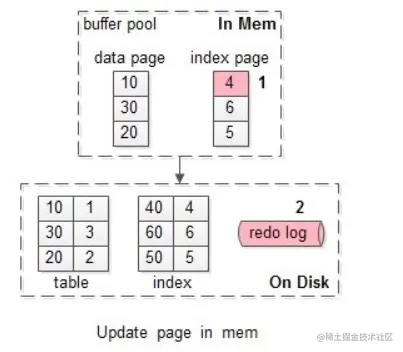 - 直接修改缓冲池中的页,一次内存操作。