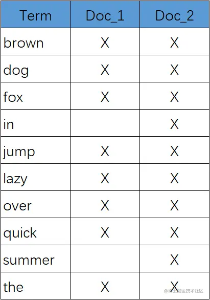 现在,如果我们想搜索 quick brown ,我们只需要查找包含每个词条的文档: