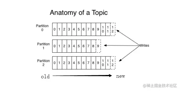 下图就展示了Kafka是如何写入数据的, 每一个Partition其实都是一个文件 ,收到消息后Kafka会把数据插入到文件末尾(虚框部分):
