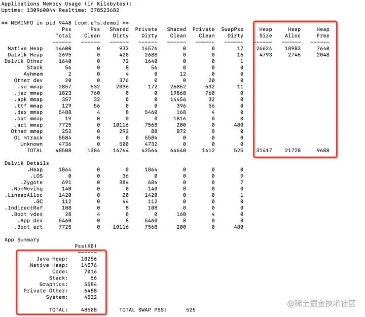 - 逻辑上讲的Heap Size和实际物理意义上使用的内存大小是不对等的,Proportional Set Size(PSS)记录了应用程序自身占用以及与其他进程进行共享的内存。