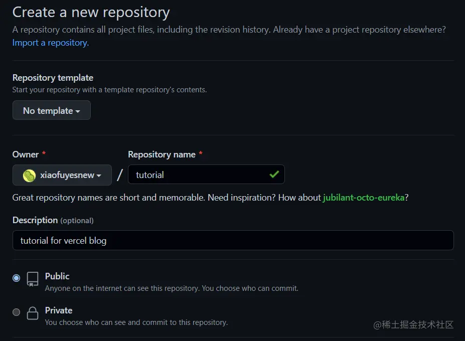 接下来,我们登录 Github 在我们的账号下创建一个 Repo :
